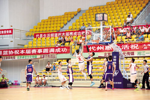 騎游硝煙剛散,籃球烽火又燃。8月23日起,代縣“博克森杯”中國大學生籃球精英賽精彩激烈,來自全國8所名校的96名大學生隊員參加了此次籃球精英賽。清華大學、太原理工大學、山西大學、上海交通大學、中國民航大學、浙江大學、北京體育大學和山東大學的8支籃球勁旅分成兩個小組,先進行小組巡回賽,然后再進行交叉淘汰賽,冠軍賽將于8月28日晚產生。比賽場上8支籃球勁旅猶如猛虎下山,好似雄鷹展翅,爭搶激烈,拼搏勇猛,扣人心弦,精彩瞬間贏得觀眾一陣陣掌聲。目前北京體育大學以83比81戰勝中國民航大學,山西大學以78比72戰勝上海交通大學,清華大學以85比84戰勝浙江大學,太原理工大學以79比73戰勝山東大學。圖為隊員在激烈比賽中(石俊文攝影報道)