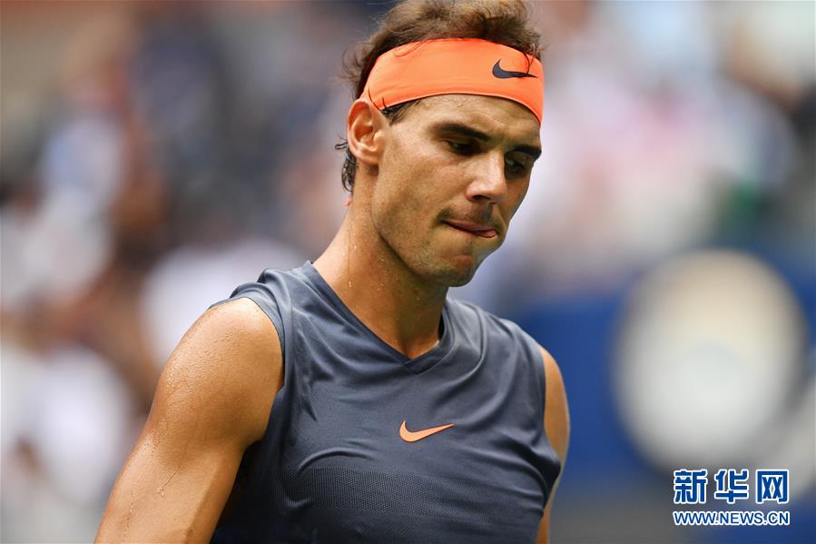 9月7日,納達爾在比賽中。 當日,在2018美國網球公開賽男單半決賽中,西班牙選手納達爾在大比分0比2落后時因傷退賽,阿根廷選手德爾波特羅晉級決賽。 新華社記者劉杰攝