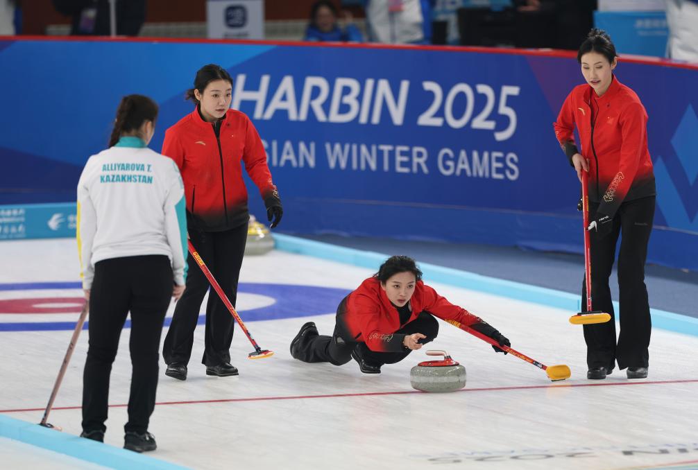 中國女隊(duì)當(dāng)日迎來一日兩賽,晚場比賽的對手是哈薩克斯坦隊(duì)。開局后,中國隊(duì)先進(jìn)入狀態(tài),前兩局得到5分,哈薩克斯坦隊(duì)在第三局后手拿到2分,之后兩局中國隊(duì)又得4分,將分差進(jìn)一步拉大。第六局,哈薩克斯坦隊(duì)?wèi){借最后一投的完美出擊得到2分,但第七局中國隊(duì)再拿2分,以11:4的比分奠定勝局,哈薩克斯坦隊(duì)提前一局握手認(rèn)輸。