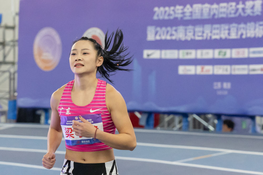 2月22日,廣東隊選手梁小靜在女子60米決賽中奪得冠軍。新華社發(胡瀟攝)