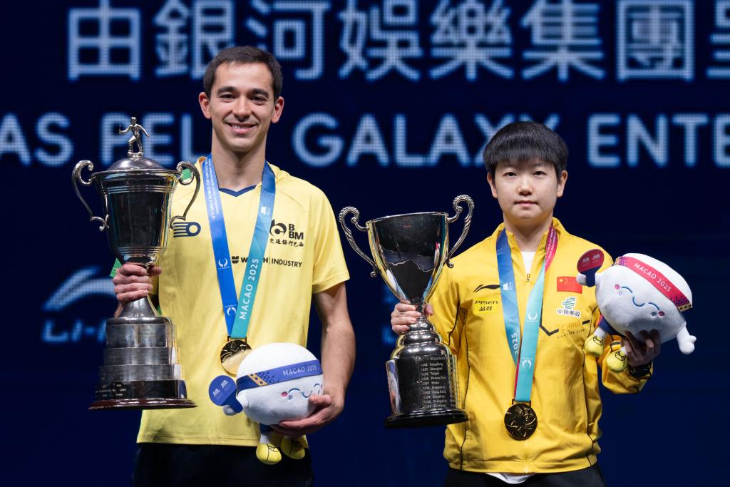 新華社澳門4月20日電(記者齊菲、孟佳)2025年國際乒聯男子及女子世界杯20日迎來收官戰。中國隊名將孫穎莎4:0戰勝隊友蒯曼,成功衛冕冠軍。雨果·卡爾德拉諾則以4:1擊敗中國隊的林詩棟,成為首位獲得乒乓球世界杯男單冠軍的巴西運動員,而這也是中國男乒自2017年世界杯后,首次丟掉“三大賽”(奧運會、世乒賽、世界杯)單打冠軍。