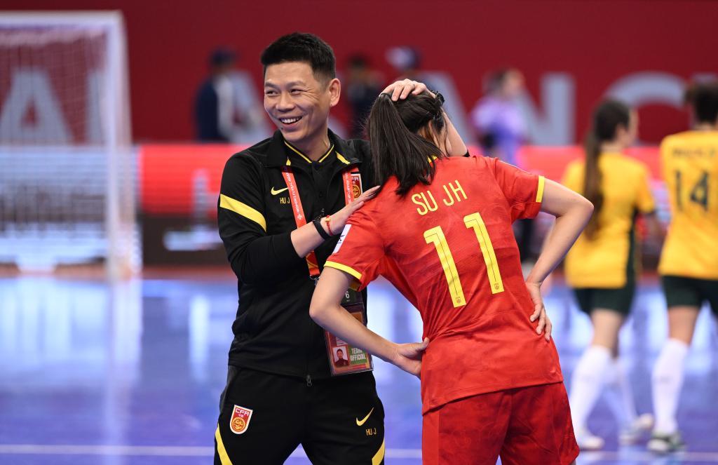 5月6日,中國隊主教練胡杰(左)在中場休息時鼓勵中國隊球員蘇嘉虹。新華社記者 貝赫 攝 當日進行的A組另一場比賽中,中國臺北隊6:1大勝烏茲別克斯坦隊。 本屆亞洲杯的前6個比賽日為小組賽階段,13日將開始四分之一決賽,并將在17日決出前三名。此次亞洲杯的前三名將獲得2025首屆女子五人制世界杯的參賽資格。 (責任編輯:蔡文斌) |