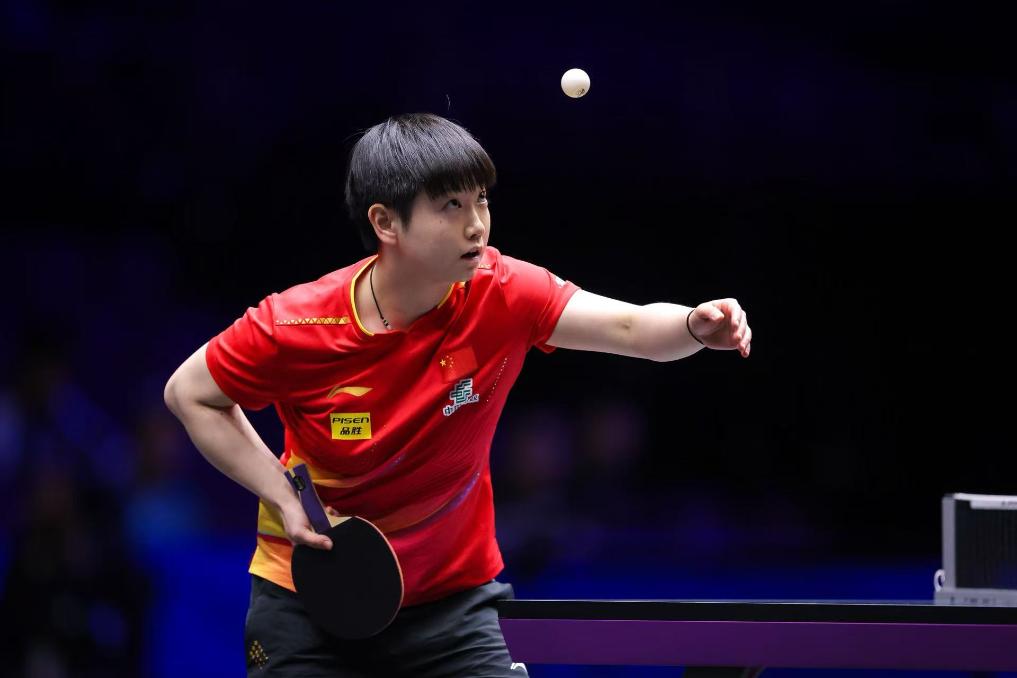 王曼昱當天率先登場,迎戰中國澳門隊的朱雨玲。首局比賽,王曼昱開局3:0領先,之后朱雨玲反超并拉開比分,以11:8先聲奪人。第二局,王曼昱又在4:0領先的情況下被對手以11:6逆轉。絕境中的王曼昱在第三局頂住壓力,以11:8扳回一局。但手感火熱的朱雨玲在第四局抓住機會,以11:5鎖定勝局。