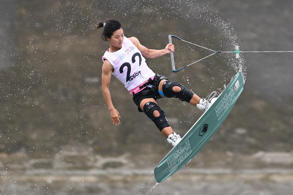 8月10日,中國選手徐露在2025年成都世運會女子尾波滑水自由式決賽中。新華社記者 陳振海 攝