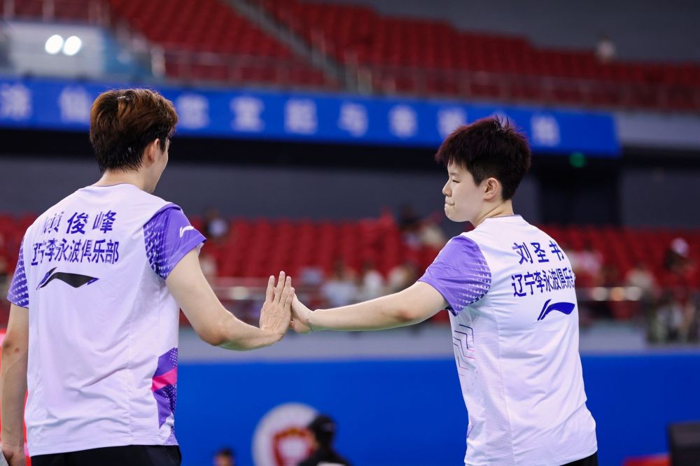 8月19日,遼寧隊劉圣書/顧俊峰在比賽中擊掌。(組委會供圖) 北京隊劉雨辰/馮彥哲在男雙比賽中以21:8、21:8輕取貴州組合。劉雨辰在賽后表示:“因為我們以前在訓練和比賽中搭檔過,對雙打的理解還在,所以今天配合挺好的。” 湖北隊在雙打項目上表現搶眼。混雙林軼/華曉蓓和楊嘉卓/李汶妹均以2:0戰勝遼寧組合,其中林軼/華曉蓓還力克女雙世界第一劉圣書與其搭檔顧俊峰,爆出冷門。男雙方面,林軼/楊嘉卓、燕宇航/陳治國、黃棋/徐智浩三對組合也全部取勝,攜手晉級。 (責任編輯:蔡文斌) |