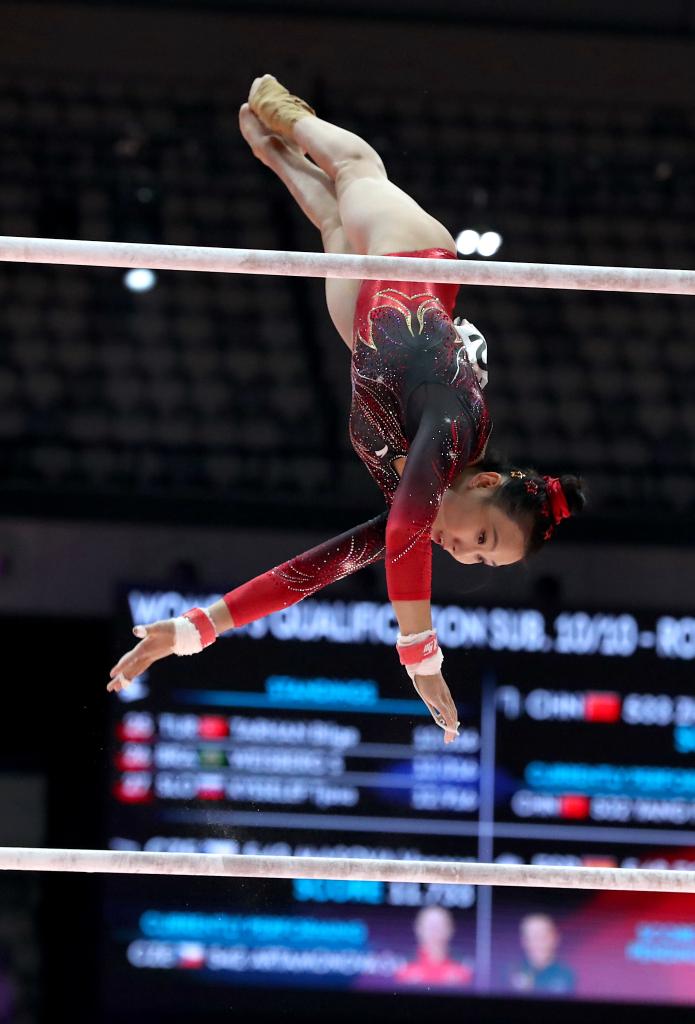 10月21日,中國選手張清穎在高低杠項目比賽中。新華社發(阿貢·昆卡亞攝) “這是我第二次參加世錦賽,比上次感覺更放得開了。希望我決賽也能繼續努力,展現更好的自己。”張清穎說。 楊凡予微和鄧婭蘭都是頭次參加世錦賽。 鄧婭蘭開心地向記者展示了自己用紅色星星發卡做的造型,笑稱自己并沒有預想中緊張,“舉手示意之后,我就只專注怎么做得更漂亮了”,希望自己“能夠將自信帶給全隊”。