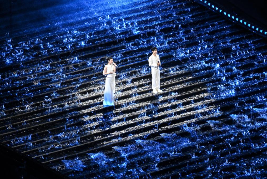 11月9日,歌手周深(右)和單依純在開幕式現場演唱。新華社記者 李鑫 攝