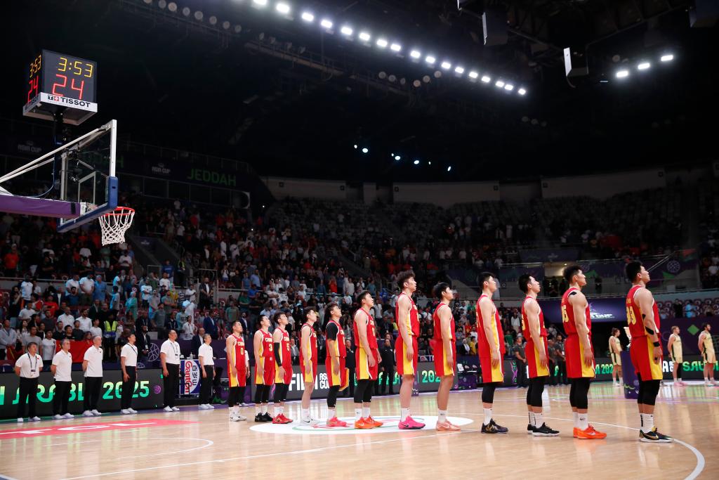 8月17日,在沙特阿拉伯吉達(dá)舉行的2025國際籃聯(lián)亞洲杯決賽中,中國隊89比90不敵澳大利亞隊,獲得亞軍。圖為中國隊球員在賽前奏唱國歌儀式上列隊。新華社記者 王東震 攝