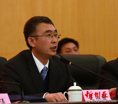 五臺山風景名勝區管委會籌委會副主任、臨時黨委副書記劉建坤在做工作報告