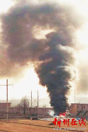 忻府區樊野村村北,路東廢棄的一排小二樓后面,村民焚燒垃圾,黑煙滿天,空氣中彌散著嗆人的氣味,從6日下午三、四點一直燒到晚上。這樣集中焚燒垃圾對周圍環境造成很大污染,望有關單位進行監管。(一網友攝于3月6日晚七點)