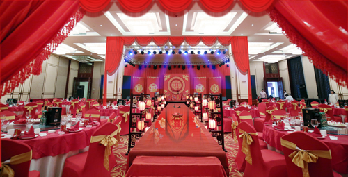 此次室內婚禮秀是充滿異域風情的西式婚禮秀《星月童話》,讓您在星光閃爍、鮮花盛放的夢幻國度感受浪漫,品味愛情;再現濃濃中國風的中式婚禮秀《想親親》,讓您在濃郁厚重的本土文化里,暢享大紅燈籠的喜慶,共掀鬧洞房的甜美熱浪。