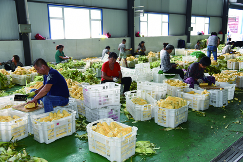 8月10日上午,已是代縣金九州農產品實業有限公司加工生產水果玉米的第5天,生產車間內外車水馬龍、熱火朝天,一派緊張繁忙的景象。