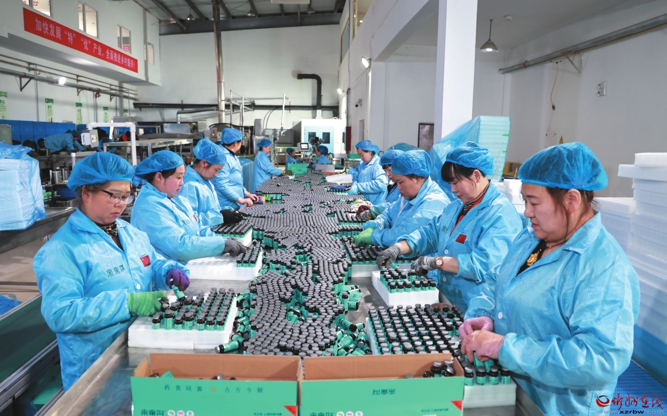 在宋家溝功能食品公司,工人們正在生產沙棘產品。記者 張存良攝