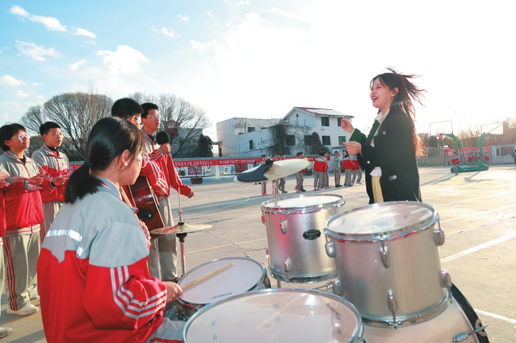 忻州人才中學音樂社團的學生們正在排練節目。本報記者張存良攝