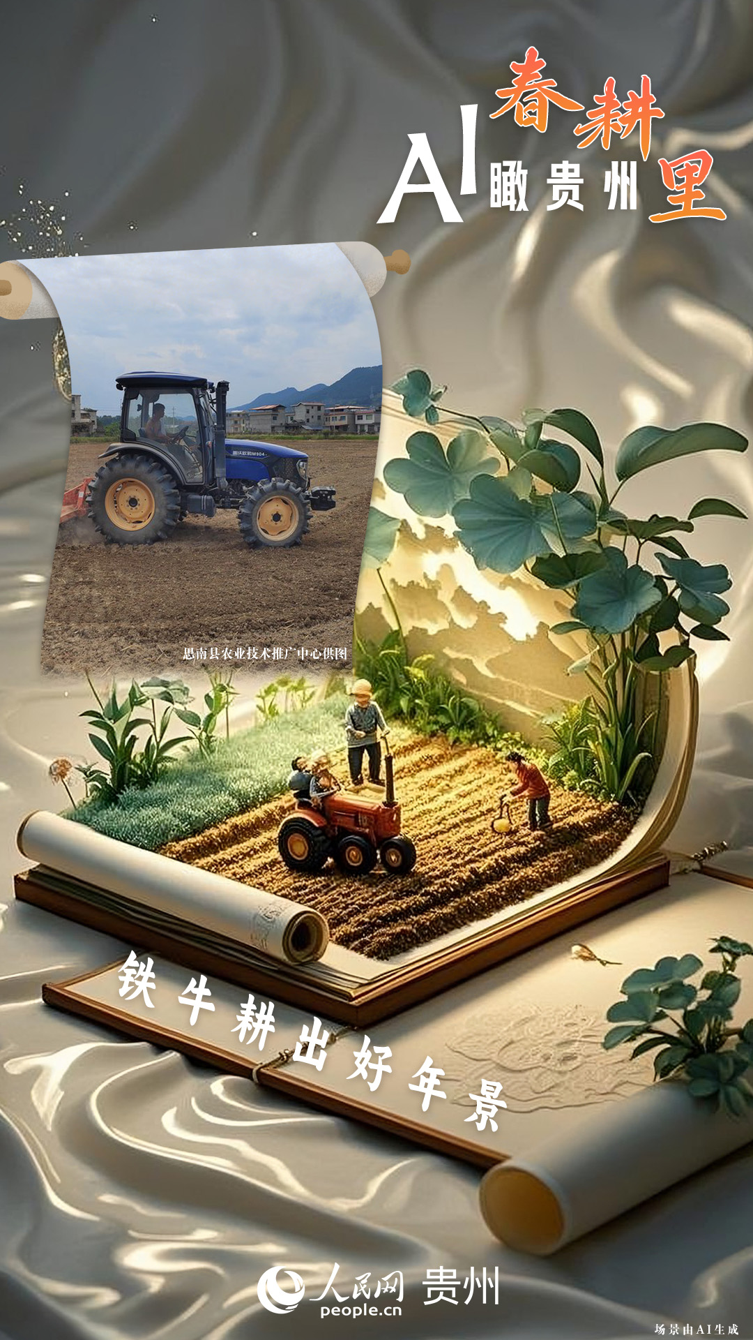 春回大地,萬物復蘇,黔地山川間正上演著一場生機勃勃的春耕盛景。傳統農耕與現代科技在這里交織,描繪出一幅幅充滿希望的畫卷。 春耕不僅是農時的序曲,更是科技與土地對話的現場。在貴州這片喀斯特地貌與民族文化交織的土地上,春耕正經歷一場靜默的變革:無人機掠過千年梯田,算法解析紅壤墑情,覆膜機織就“智能外衣”,而彎腰勞作的農人,依然用繭手傳遞著古老農耕文明的溫度。 本期跟隨AI一起描繪貴州春耕里的故事。