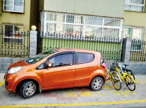 小黃車入駐忻州,助力文明城市建設,為市民綠色出行提供了便利。然而卻出現了一些“扎眼”的現象,8月20日上午,一輛小轎車停入了小黃車的停車點,顯得十分不雅。(陳曉平 攝)