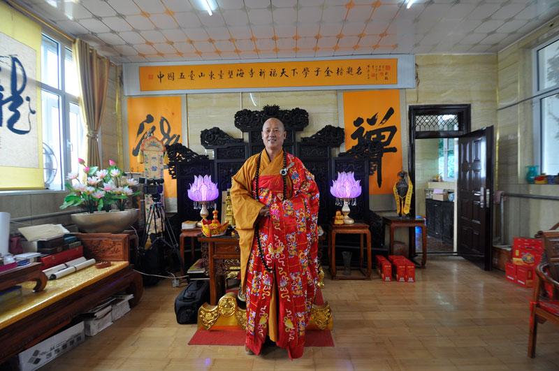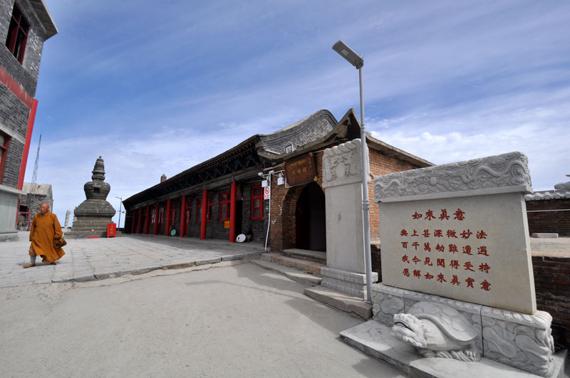他常年居于海拔高達2996米的五臺山東臺頂望海寺,每當旭日初升,霞光萬道,靜謐的望海寺完全浸于一片云山霧海之中,配上渾厚的晨鐘聲,愈發顯得莊嚴肅穆。