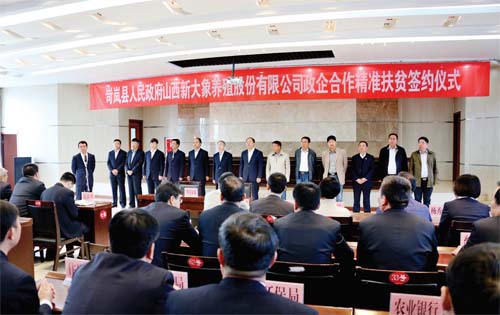 ???圖為岢嵐與山西新大象養殖股份有限公司政企合作精準扶貧簽約儀式現場。尹艷 攝??