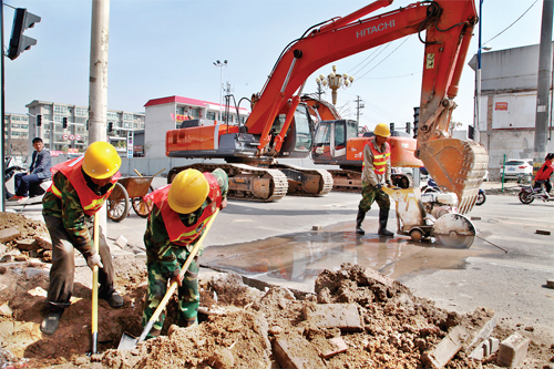 圖為勝利街改造工程開挖道路管線探槽現場。梁春霞 攝