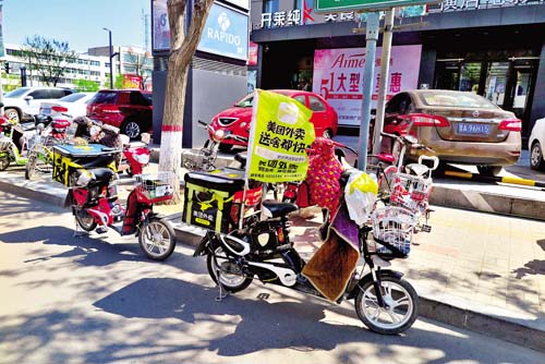 近日記者在開萊購物廣場西側的非機動車道上看到,臨近中午時分,駕駛電動車配送外賣的小哥到商場送午飯時,為了圖方便,將車隨便停放在非機動車道上,影響過往行人通行。在此提醒外賣小哥,在多送快跑提升效益的同時,千萬要遵守交通規則和城市文明秩序,爭做文明好市民,不要給整潔的街道添堵。魯明強 攝影報道