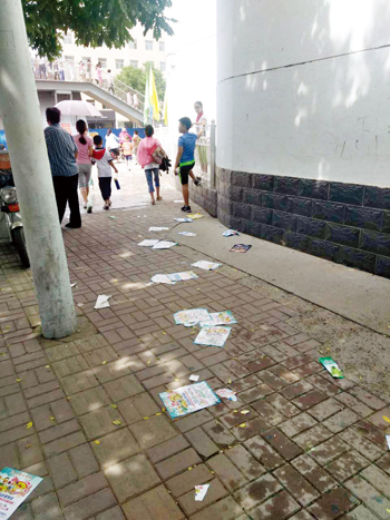 隨著暑期臨近,學校周邊的宣傳招生培訓等各種廣告傳單層“ 發”不窮,既給環境衛生造成了污染,也給環衛工人增加了勞動負擔。希望商家能文明宣傳,不要讓小廣告臟了城市的“臉”。也希望相關部門對這樣的商家進行疏導監管,共同凈化環境。一網友攝