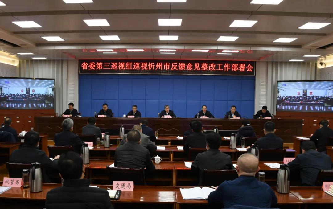 1月28日,省委第三巡視組巡視忻州市反饋意見整改工作部署會召開,安排部署專項巡視和專項檢查反饋意見的整改落實工作,切實推動整改任務落實落細落到位,以整改的實際行動推動全年各項工作取得良好開局。市委書記朱曉東主持會議并講話。市委副書記、政法委書記郭奔勝出席會議。市委常委、市紀委書記、市監委主任劉卓良就監督推動巡視反饋問題整改提出意見。市委常委、常務副市長趙新年安排部署涉糧巡視問題整改任務。市委常委、秘書長、統戰部長張文偉安排部署省委巡視整改專項檢查反饋問題整改任務。市領導溫建軍、張敏、武憲堂、范建民、賈玲香、耿鵬鵬、郭寶厚、袁小波出席。