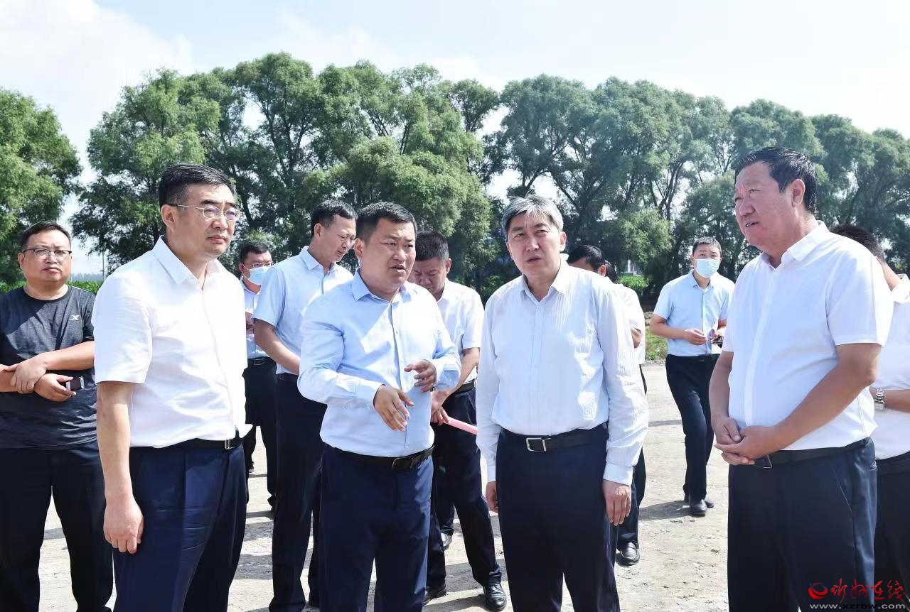 開工儀式結束后,朱曉東、李建國一行來到九龍崗森林公園實地察看片區改造提升項目,赴云中河東延項目工地觀摩生態治理項目。
