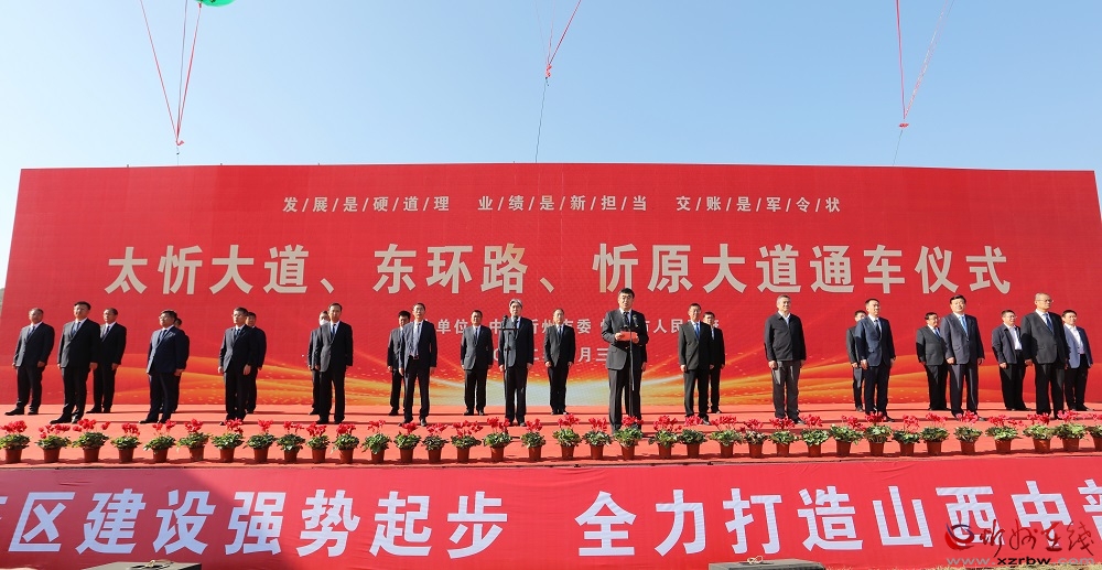 9月30日,我市舉行太忻大道、東環路、忻原大道通車儀式,市委書記朱曉東出席儀式并宣布太忻大道、東環路、忻原大道通車。市委副書記、市長李建國主持儀式。市委副書記、政法委書記郭奔勝,市人大常委會主任王珍,市政協主席范建民,山西建投集團公司副董事長、總經理徐忠和,市領導劉卓良、趙新年、張文偉、溫建軍、張敏、張宇光、史紅波、賈玲香、崔崢嶺、李碩、王建峰、張文斌,市政府秘書長張艮生,中鐵十七局集團公司和中建三局集團公司相關負責人出席。副市長耿鵬鵬介紹項目建設情況。