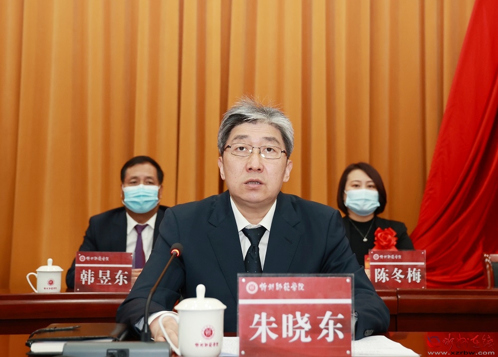 朱曉東指出,長期以來,忻州師院在黨委的堅強領導下,凝心聚力肩負新使命,集思廣益展現(xiàn)新業(yè)績,培養(yǎng)了一批又一批思想素質(zhì)高、業(yè)務技能好、實踐能力強的優(yōu)秀中小學教師和建設人才,在服務地方經(jīng)濟社會發(fā)展中提供了忻師智慧、彰顯了忻師力量、作出了忻師貢獻。希望忻州師院立足忻州、胸懷天下,把握大勢、放眼未來,向著建設特色鮮明、國內(nèi)知名的高水平應用型師范大學這一目標持續(xù)前進。一是要強化黨的領導,始終把黨的政治建設擺在首位,認真落實管黨治黨、辦學治校的主體責任,全面加強黨的各項建設,不斷推進黨的建設新的偉大工程,為實現(xiàn)學院發(fā)展藍圖提供堅強的政治和組織保證。二是要強化奮進意識,深入學習貫徹習近平總書記關于教育工作的重要論述和全國教育大會精神,認真落實立德樹人根本任務,持續(xù)實施“1233”發(fā)展戰(zhàn)略,特別是要厚植辦學情懷,深化改革創(chuàng)新,彰顯本土特色,做強優(yōu)勢學科,強化交流協(xié)作,實現(xiàn)城市與學校的交相輝映、共進共榮。三是要強化服務意識。師院新校區(qū)建成使用,表明了市委、市政府一以貫之興教育、強教育的鮮明態(tài)度,更是為忻州師院的明天加油鼓勁。希望忻州師院進一步強化服務意識,與區(qū)域發(fā)展布局同頻共振,在服務中心大局中精準發(fā)力,著力提升服務地方經(jīng)濟社會發(fā)展的能力和水平,為忻州全方位推動高質(zhì)量發(fā)展作出新的更大貢獻。市委、市政府將一如既往地把教育擺在優(yōu)先發(fā)展的戰(zhàn)略位置,一如既往地支持忻州師院的建設和發(fā)展,讓忻州師院越辦越好。