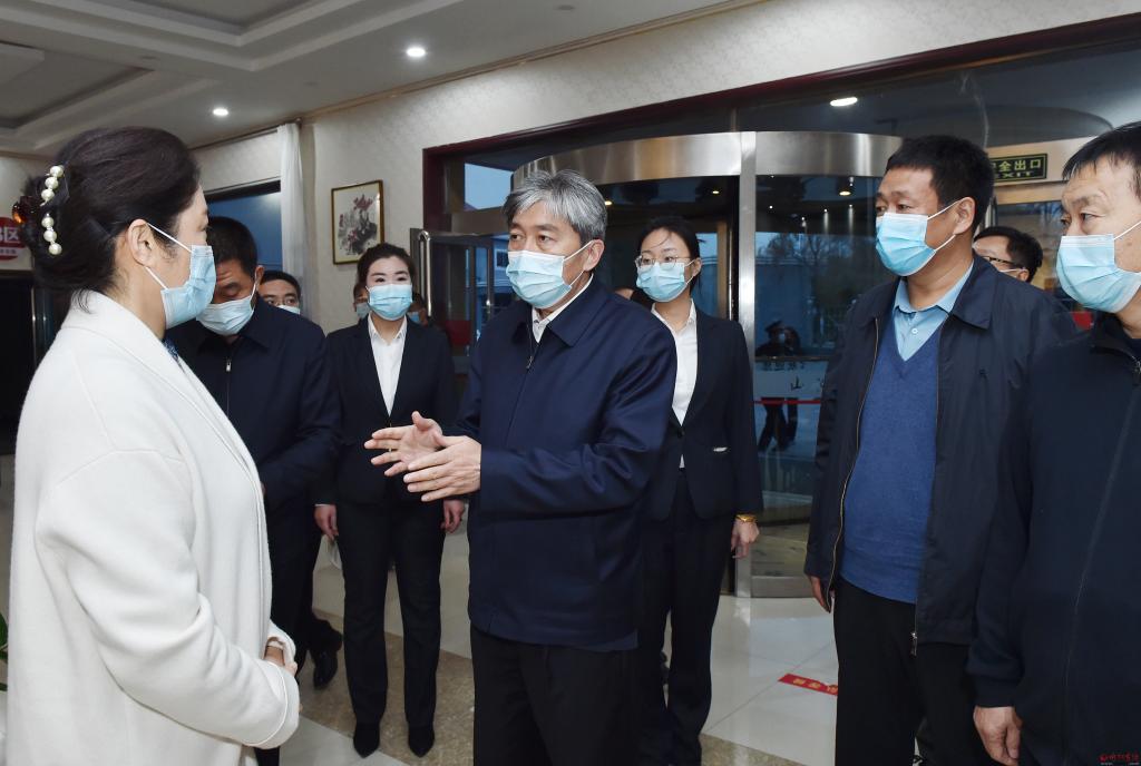 朱曉東一行先后來到忻州城區七一路和頓村、奇村等地酒店隔離點,每到一處,朱曉東都通過實地察看、聽取匯報、交流詢問等方式,詳細了解隔離場所管理運行、通道設置、工作人員配備、值班值守、環境消殺、物資儲備等情況,并就在督查中發現的問題現場提出整改意見。調研中,朱曉東還向奮戰在一線的醫護人員、后勤保障人員表示慰問,叮囑他們既要保障好隔離人員的正常生活,也要加強自我防護,確保各項工作流程形成閉環,堅決杜絕出現交叉感染。