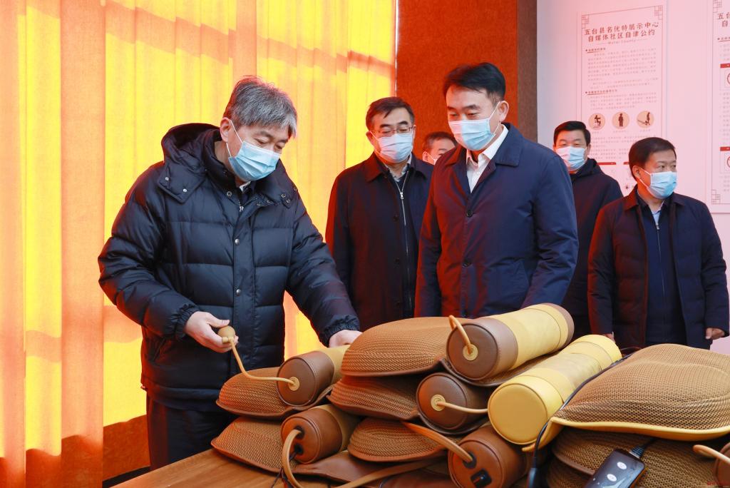 簽約儀式結束后,與會人員現(xiàn)場觀摩了“投產(chǎn)一批”重點項目五臺縣名優(yōu)特展示中心。該中心集五臺縣名優(yōu)特產(chǎn)品展示、網(wǎng)紅打卡地、睡覺村好睡眠體驗館、電商直播基地、辨體質本草雜糧調理中心、農(nóng)民自產(chǎn)自銷交易平臺、第一書記之家七大功能于一處,在視覺效果上突出觀賞功能,為網(wǎng)紅打卡宣傳提供平臺和素材,同時兼具超市功能,顧客在參觀體驗的同時即可購買產(chǎn)品,既能帶動農(nóng)民創(chuàng)收,又能為城市居民帶來質優(yōu)價廉的農(nóng)產(chǎn)消費品,為農(nóng)產(chǎn)品銷售提供一處高效交易平臺。