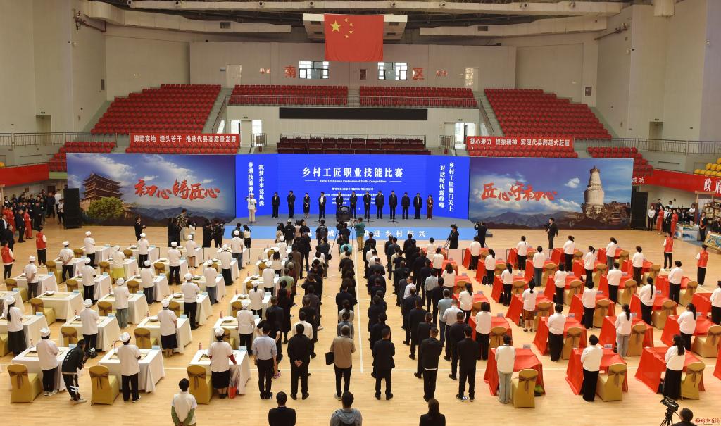 活動(dòng)現(xiàn)場(chǎng)。馮曉磊 攝 雁門(mén)聲聲鑄就工匠精神,沱水悠悠傳承非遺技能。5月14日,鄉(xiāng)村工匠職業(yè)技能比賽暨鄉(xiāng)村工匠遴選分類(lèi)項(xiàng)目(山西)座談會(huì)在代縣舉行。國(guó)家鄉(xiāng)村振興局考評(píng)司二級(jí)巡視員周建文出席并講話,市委書(shū)記朱曉東出席并致辭,省鄉(xiāng)村振興局局長(zhǎng)張玉宏,市委副書(shū)記、市長(zhǎng)李建國(guó)出席,中國(guó)鄉(xiāng)村發(fā)展基金會(huì)副秘書(shū)長(zhǎng)丁亞冬出席并講話,省鄉(xiāng)村振興局副局長(zhǎng)張建成、二級(jí)巡視員趙小英,市委常委、代縣縣委書(shū)記崔崢嶺,副市長(zhǎng)李碩,市政府秘書(shū)長(zhǎng)張艮生,陜西、黑龍江、吉林、遼寧、河北、山東等六省鄉(xiāng)村振興局分管負(fù)責(zé)同志及有關(guān)業(yè)務(wù)處室負(fù)責(zé)同志,山西11個(gè)市鄉(xiāng)村振興局負(fù)責(zé)同志參加。