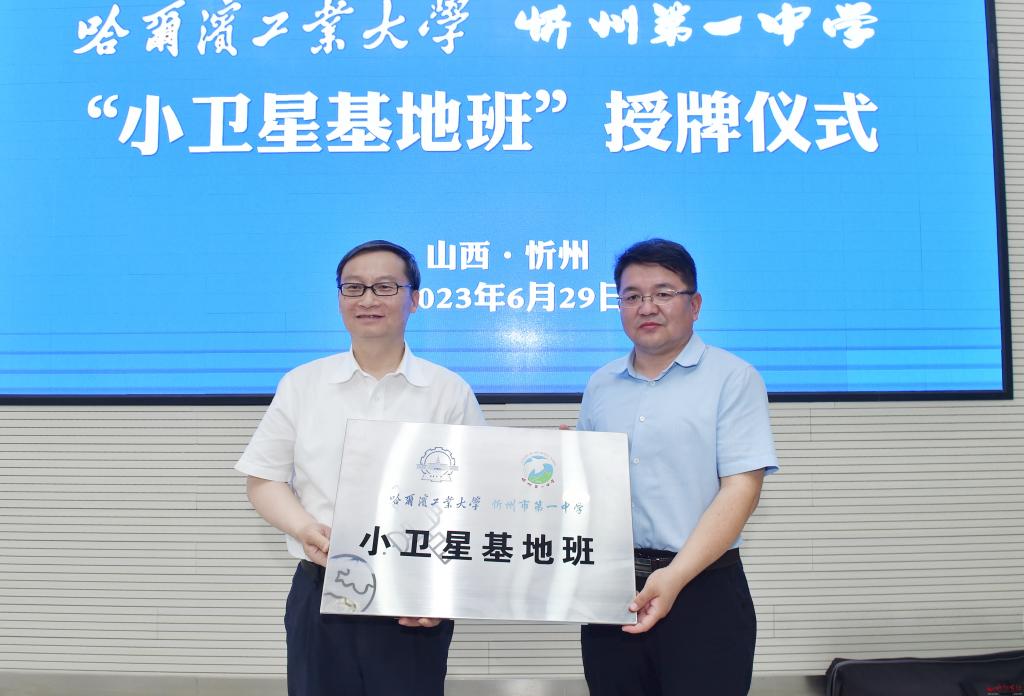 在隨后舉行的授牌儀式上,朱曉東強調,哈爾濱工業大學“小衛星基地班”為忻州籍學子提供了一個接觸哈爾濱工業大學、了解哈爾濱工業大學、體驗哈爾濱工業大學的優勢平臺。希望通過“小衛星基地班”精心設置的課程活動,助力更多優秀學子明確定位、開拓視野、篤定名校,為忻州乃至全省創新人才培養模式、提高人才培養質量、激發更多教育引領的前瞻思維,讓“小衛星”傳遞“大能量”。希望忻州一中能夠以哈爾濱工業大學“小衛星基地班”授牌儀式為新起點、新標桿,提升辦學育人的更高境界,培養更多具有國際視野、家國情懷、創新思維、攻堅能力的未來領軍人才,讓“小衛星”塑造“大格局”。希望哈爾濱工業大學能夠把創新成果轉化到忻州,把創新事業布局到忻州,把新方案、新模式、新場景、新思路實踐到忻州,打造市校合作的更多亮點,讓“小衛星”引領“大發展”。