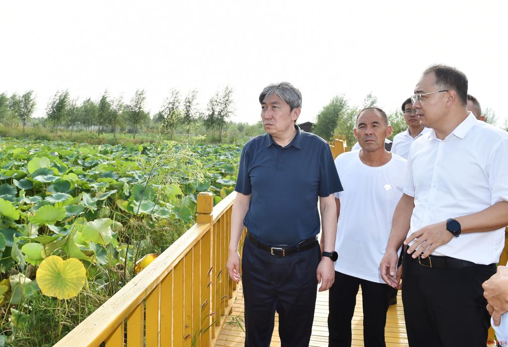 在吉福寺農場,朱曉東深入田間地頭實地查看農作物長勢,與農場負責人面對面交流,仔細詢問農產品品種、畝產量、耕種模式、農旅融合發展等情況。他指出,要加快轉變發展觀念,立足農場資源稟賦,找準農旅融合發展的切入點,把旅游產業和農業產業有機結合,高標準高品質打造有鄉村氣息的參與式、觀光式和體驗式旅游產品。要充分挖掘鹽堿地綜合利用潛力,因地制宜抓好技術推廣、品種選育等工作,大力探索鹽堿地治理改良的有效方法,深度做好鹽堿地特色農業大文章。
