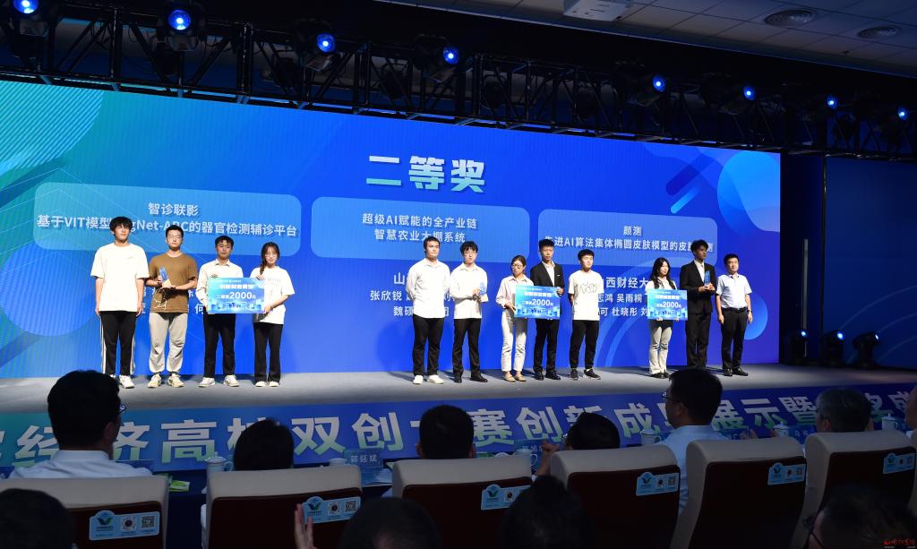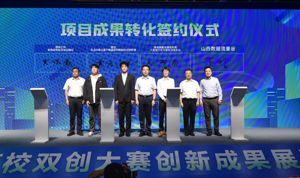 項目成果轉化簽約儀式現場。馮曉磊 攝 9月16日,首屆數字經濟高校雙創大賽創新成果展示暨頒獎典禮在忻州舉辦。省委書記藍佛安致賀信,教育部副部長、黨組成員孫堯發表視頻致辭,省委常委、統戰部部長徐廣國出席活動。省委統戰部副部長、省工商聯黨組書記陳旭忠,省教育廳黨組書記、廳長馬駿,省工商聯主席景普秋,省科協黨組書記、副主席丁紀崗,市委書記朱曉東,市委副書記、市長李建國,省委統戰部副部長郭延斌,省工信廳副廳長尚阿浪,團省委副書記陳鍇,省工商聯副主席李劍英,副市長、太忻經濟一體化發展忻州區運營中心黨委書記、主任王建峰出席活動。 藍佛安在賀信中指出,當今時代,數字浪潮正以迅速崛起、深度滲透的姿態席卷而來,成為影響全球格局、重塑競爭秩序、加速時代變革的重要力量。近年來,山西深入學習貫徹習近平總書記關于發展數字經濟的重要論述,認真貫徹落實黨的二十大關于“加快建設網絡強國、數字中國”的重大部署,大力推動產業數字化和數字產業化,全省數字經濟跑出加速度、邁上新臺階。省委十二屆六次全會明確將推動數字經濟發展壯大作為六大轉型行動之一,必將為山西進一步加快轉型發展、奮進“兩個基本實現”目標注入強勁動能。 藍佛安強調,數字經濟高質量發展,關鍵在創新,根本靠人才。數字經濟高校雙創大賽為大學生青年才俊擁抱數字浪潮、投身創業創新提供了新的平臺,在高校、企業、資本和創新項目之間搭建了新的橋梁。希望同學們打牢知識基礎、勇攀科技高峰,以昂揚向上的朝氣、敢為人先的銳氣,在探索美好未來、逐夢數字時代的征途上大展身手,努力為實現中華民族偉大復興的中國夢貢獻智慧和力量。同時,也希望參與和支持本次大賽的省內外各高校、企業和機構,攜起手來,加強合作,共創數字山西美好未來,助力數字中國建設。 孫堯在致辭中強調,黨的二十大報告中指出“教育、科技、人才是全面建設社會主義現代化國家的基礎性、戰略性支撐”,山西省教育廳和省工商聯主辦的這場數字經濟高校雙創大賽,是培養數字經濟創新創業人才的有效途徑,也是推動數字經濟產教融合創新發展的重要平臺,對促進高校學生創新創業、推動項目落地見效具有積極作用。希望這些年輕的創業者繼續保持創新的激情,成為民營經濟數字化轉型的中堅力量。希望大賽持續舉辦,將其打造為我國數字經濟領域的一個重要平臺,營造鼓勵創新創業創造的社會氛圍,推動數字經濟的蓬勃發展。 據介紹,這是全國首個圍繞數字經濟領域,面向高校學子的雙創大賽。大賽以“輕輕聯動·數實融合”為主題,旨在為高校、政府、企業、資本和創新項目之間建立起溝通橋梁,推動數字經濟領域人才培養,助力山西數字經濟高質量發展。大賽圍繞產業數字化、數字產業化設置創新創業和新媒體雙賽道,通過打造高水平的創新創業平臺,積極引導高校畢業生留創本地,助力年輕人實現創新創業夢想,共同為山西數字經濟高質量發展“添磚加瓦”。 大賽自6月5日正式啟動以來,獲得全國60多所高校、近百家數字經濟企業的積極響應,大賽抖音話題#這YOUNG很山西#累計播放量已突破1.1億次,線上線下累計參賽人數超10萬人。創新創業賽道報名項目525組,項目領域涵蓋數字文娛、數字能源、數字農業、數字智造、數字醫療、數字教育、數字生活、數字基建等多個方面,最終甄選出12組數字經濟領域具有引領性和廣闊發展前景的科技創新成果,培育出一批實用型數字經濟人才。新媒體賽道入圍優秀作品突破3000個,創作內容主要圍繞山西的厚重歷史、自然風光、文明古跡、特色美食、人文情懷、數字經濟發展等多個角度,最終評選出20個獲獎視頻和12名周冠軍、32名優秀創作者,把短視頻打造成為展示山西文化底蘊、開放形象和經濟發展的重要窗口,并搭建起了短視頻創作人才庫,形成了多角度、廣觸達、高曝光的山西特色新媒體宣傳矩陣和人才梯隊,為我省數字經濟及高質量發展注入了活力。