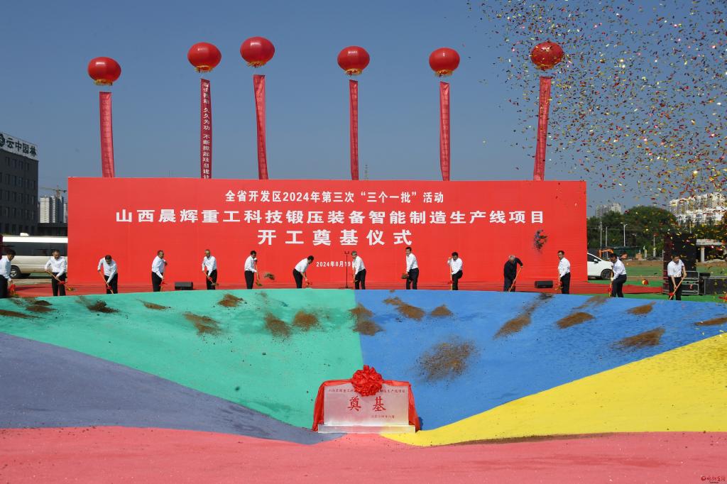 活動期間,與會人員共同為“開工一批”重點項目——山西晨輝重工科技鍛壓裝備智能制造生產線項目培土奠基,現場觀摩了“投產一批”重點項目——一道新能源(忻州)有限公司14GW光伏電池生產基地項目。(張曄)