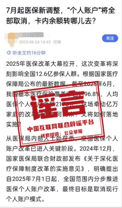 辟謠:警惕!“醫保‘個人賬戶’將全部取消”系舊謠新傳