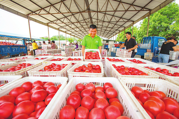 6月2日,夏縣廟前鎮楊村西紅柿喜迎大豐收,村民抓緊采摘包裝發往全國各地。該村已有20年種植西紅柿歷史,近年來經過產業結構調整、優選育種,種植面積不斷擴大,西紅柿目前暢銷北京、上海、西安等地,菜農借此每畝可收入5000元以上。(楊建峰攝)