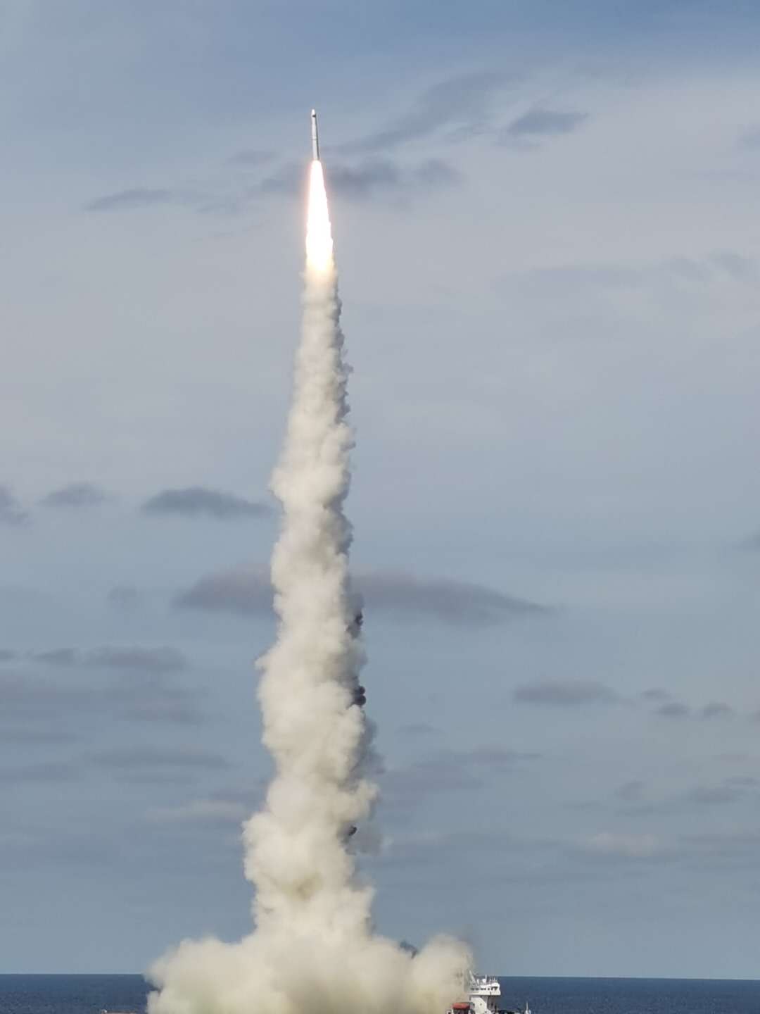9月15日,長征十一號運載火箭在黃海海域,“一箭九星”發射成功(王偉童 攝)