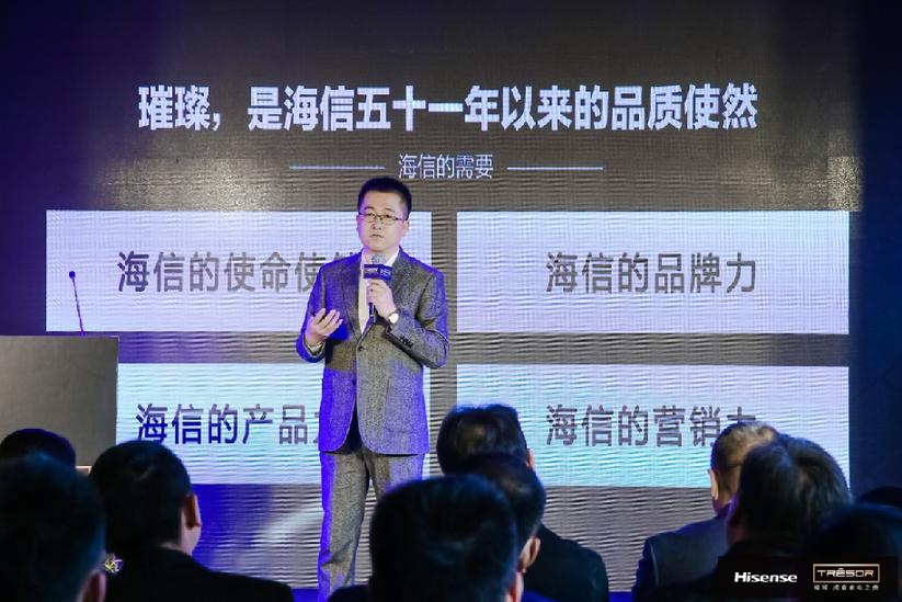 圖為海信中國(guó)區(qū)營(yíng)銷總部副總裁馬寶龍博士 海信中國(guó)區(qū)營(yíng)銷總部副總裁馬寶龍博士在接受新華網(wǎng)采訪時(shí)說(shuō),伴隨新一輪消費(fèi)升級(jí),家電消費(fèi)逐步從功能性消費(fèi)向品質(zhì)消費(fèi)轉(zhuǎn)型,成套購(gòu)買、智慧互聯(lián)、完美家庭、品質(zhì)生活正在成為品質(zhì)消費(fèi)的剛性需求。 據(jù)璀璨首席美學(xué)官兼創(chuàng)意總監(jiān)楊守坤介紹,璀璨套系以 “天圓地方”為基本設(shè)計(jì)元素,用厚重大氣的“方”與靈動(dòng)、美滿的“圓”相結(jié)合,并且在整個(gè)外觀設(shè)計(jì)中也融入了現(xiàn)代審美元素,體現(xiàn)了傳統(tǒng)美和現(xiàn)代美的結(jié)合。 海信璀璨高品質(zhì)成套家電包括彩電、空調(diào)、冰箱和洗衣機(jī)四類產(chǎn)品,不僅做到在外觀設(shè)計(jì)、智能體驗(yàn)、服務(wù)一體化上的極致統(tǒng)一,還聚合音畫合一、智能操控、新風(fēng)體感、真空立體保鮮、蒸燙除菌等家電產(chǎn)品性能,同時(shí)還為用戶帶來(lái)以電視為中心的家庭互聯(lián)的生活體驗(yàn)。