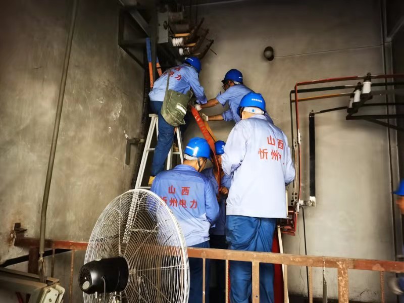 7月27日早8時,國網忻州供電公司保供電小分隊9人奔赴現場,進入小區配電室的那一瞬間,就被眼前的場景驚到了,配電室內地面浸水導致主變地基下沉、變壓器基礎嚴重傾斜,與之相連的高壓側設備基本損壞,母排變形、融管炸裂、觸頭損壞,目測這里的工作任務量估計得干到晚上了。