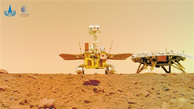 距離火星表面還有1.5千米時,一路保護著我們、像龜甲一樣的背罩連帶著降落傘被拋掉。與此同時,主發(fā)動機打開,強大的反作用力使我們的速度逐漸降低,光學(xué)成像敏感器開始對下方進行成像。在距離火星表面還剩100米的時候,著陸平臺懸浮在空中,對腳下的地表進行激光三維成像,選擇最佳的著陸位置。位置確定后,著陸平臺在主發(fā)動機的精妙控制下開始緩緩下降。終于,隨著一團塵埃被氣流濺起,著陸平臺的4只腿穩(wěn)穩(wěn)落在了火星烏托邦平原?;鹦墙K于迎來了它的第一位中國客人。