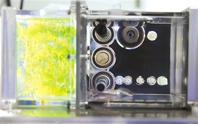 在問天艙生命生態(tài)實驗柜小型受控生命生態(tài)實驗?zāi)K中,魚類、植物和微生物協(xié)同參與——藻類光合作用產(chǎn)生的氧氣供斑馬魚呼吸,魚呼出的二氧化碳供藻類進(jìn)行光合作用,進(jìn)食產(chǎn)生的糞便則提供了藻類生長的養(yǎng)料。在飲食方面,科學(xué)家專門設(shè)計了魚食,用注射器推進(jìn)“魚缸”。