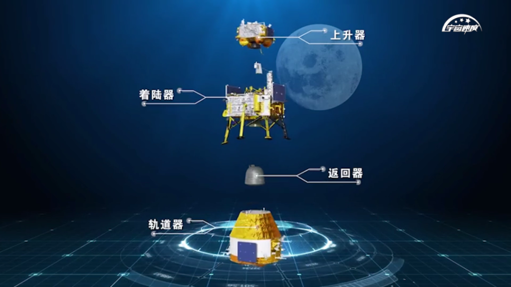嫦娥六號由軌道器、著陸器、上升器、返回器四個部分組成。(中國航天科技集團五院供圖)