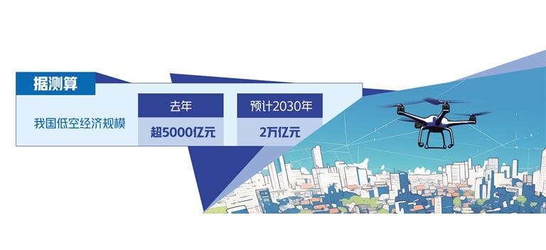 目前,以傳統(tǒng)通用航空和新型無人機(jī)產(chǎn)業(yè)為基礎(chǔ)的低空經(jīng)濟(jì)在我國(guó)正蓬勃發(fā)展。截至2023年底,我國(guó)通航企業(yè)達(dá)689家,通用機(jī)場(chǎng)451個(gè)。據(jù)測(cè)算,去年我國(guó)低空經(jīng)濟(jì)規(guī)模超5000億元,預(yù)計(jì)2030年有望達(dá)到2萬億元。