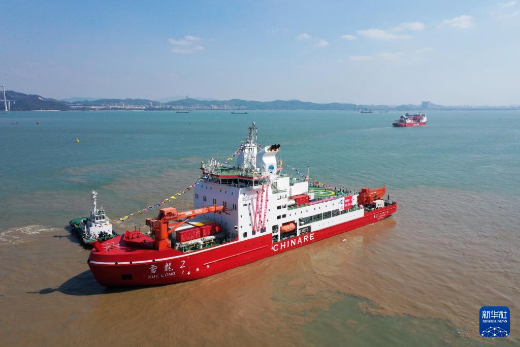2024年11月1日,“雪龍”號和“雪龍2”號船從廣州南沙國際郵輪母港碼頭出發(無人機照片)。新華社記者 黃國保 攝