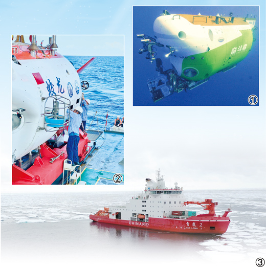 圖①:“奮斗者”號注水下潛。中國科學院深??茖W與工程研究所供圖