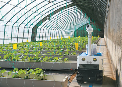 3月21日,無人巡檢機器人在天津一家智慧農業園區內巡控。新華社記者 孫凡越攝