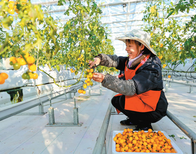 2024年12月19日,江西省瑞昌市高標準設施蔬菜示范中心,工人正在采摘西紅柿。魏東升攝(人民視覺)