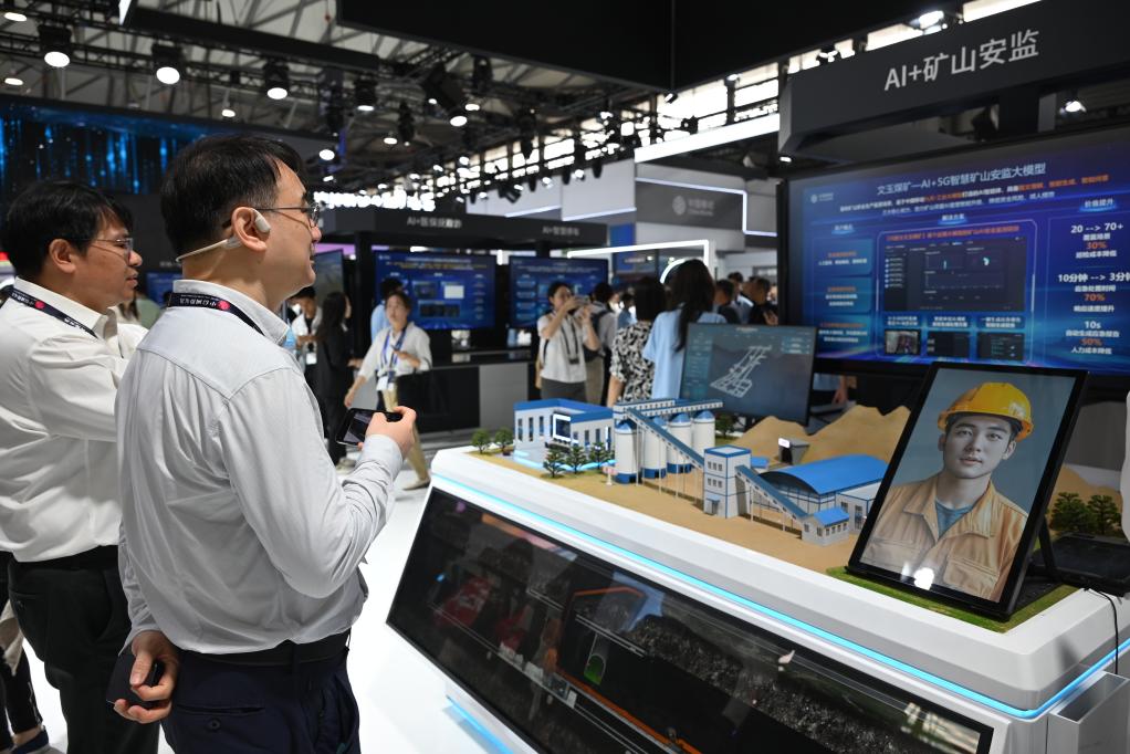 6月18日,觀眾在中國移動展臺了解“AI+礦山安監”技術方案。新華社記者 陳愛平 攝